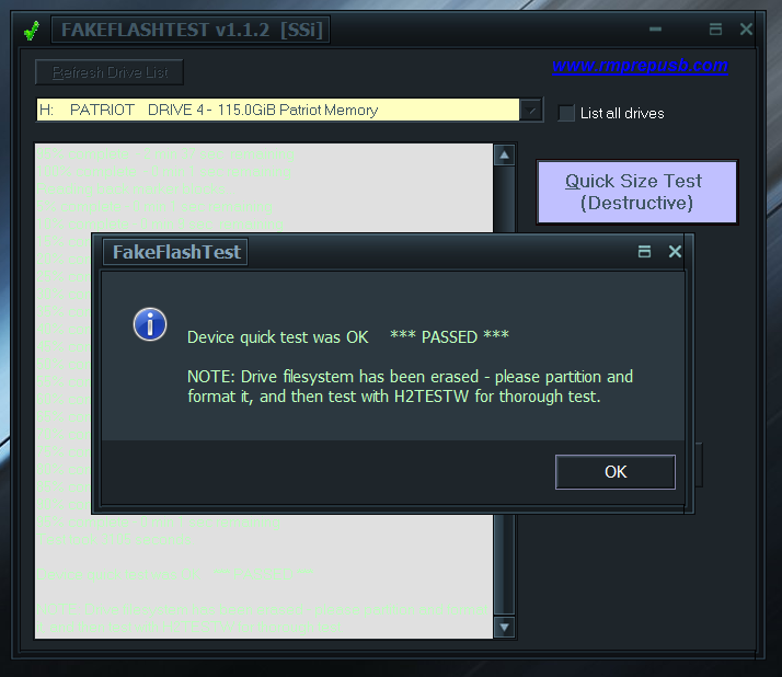 OK. The USB drive seems OK.